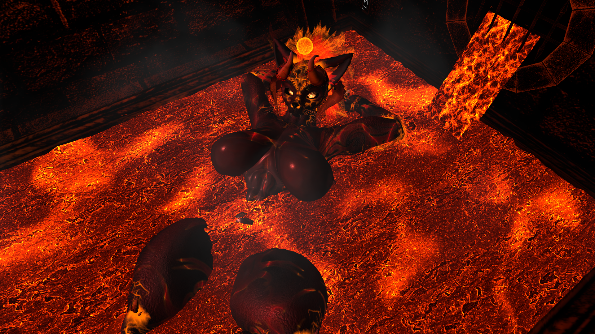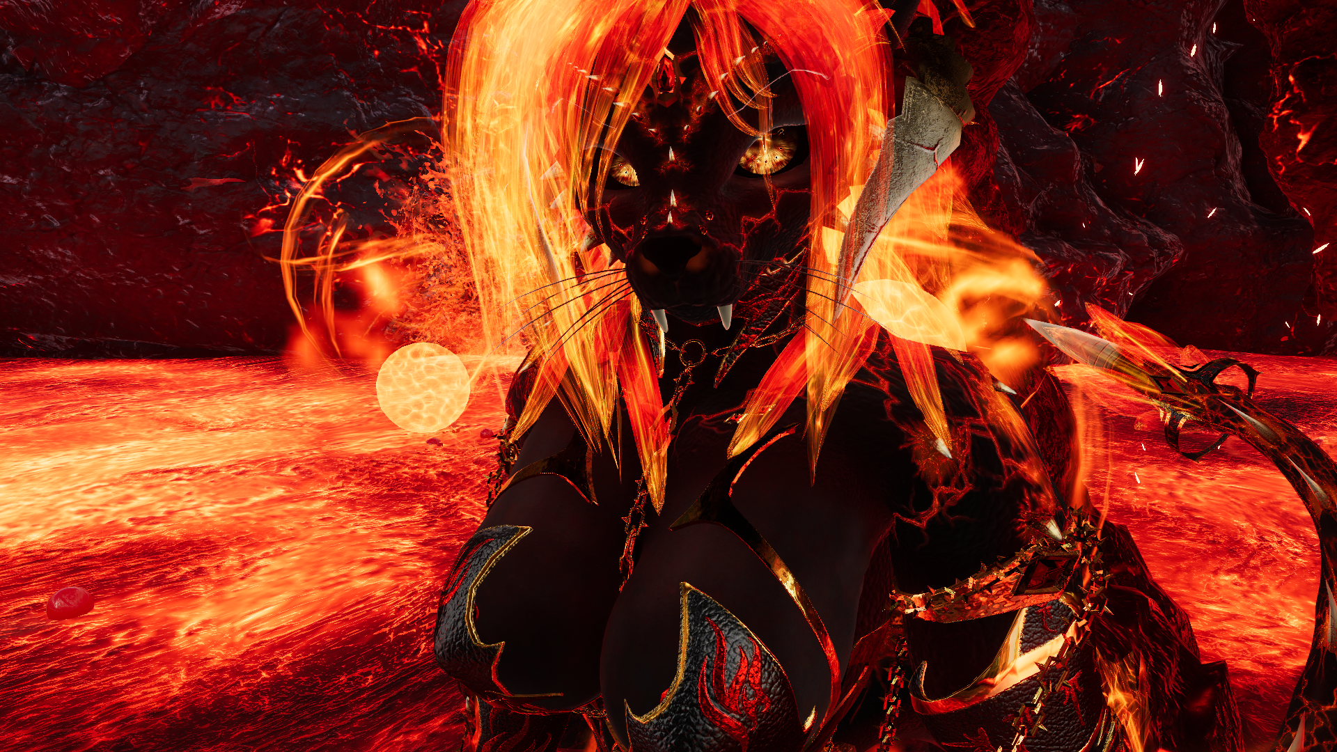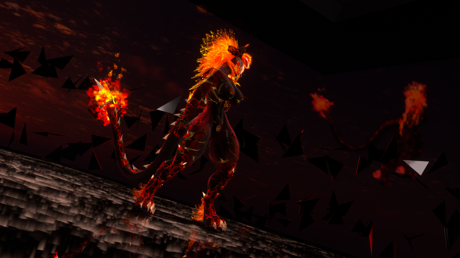 Trisha the HellCat is a dynamic avatar capable of transformation, characterized by an array of fiery effects and mature themes. She possesses the ability to soar through the skies and is equipped with an intricate magic system. Additionally, she features a diverse selection of prefabricated elements that cater to various attributes, accommodating both face-tracking and non-face-tracking configurations. Furthermore, there are versions available that do not undergo transformation, lack the NSFW enhancements, and exclude particle effects.systems.