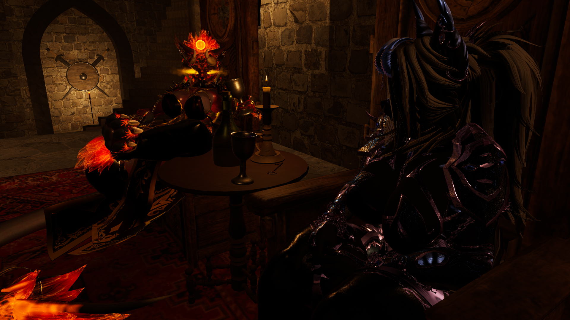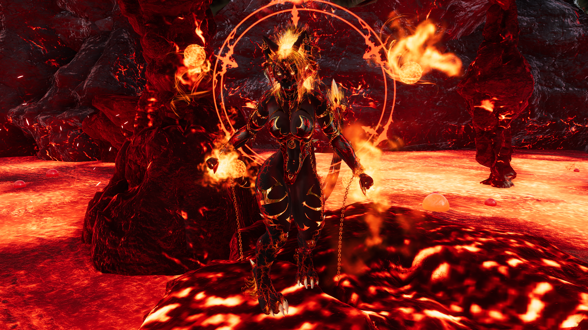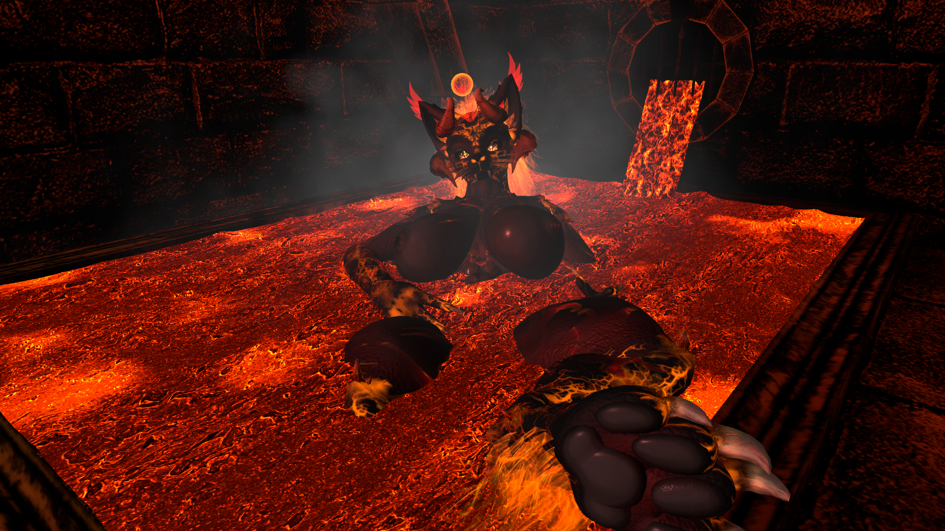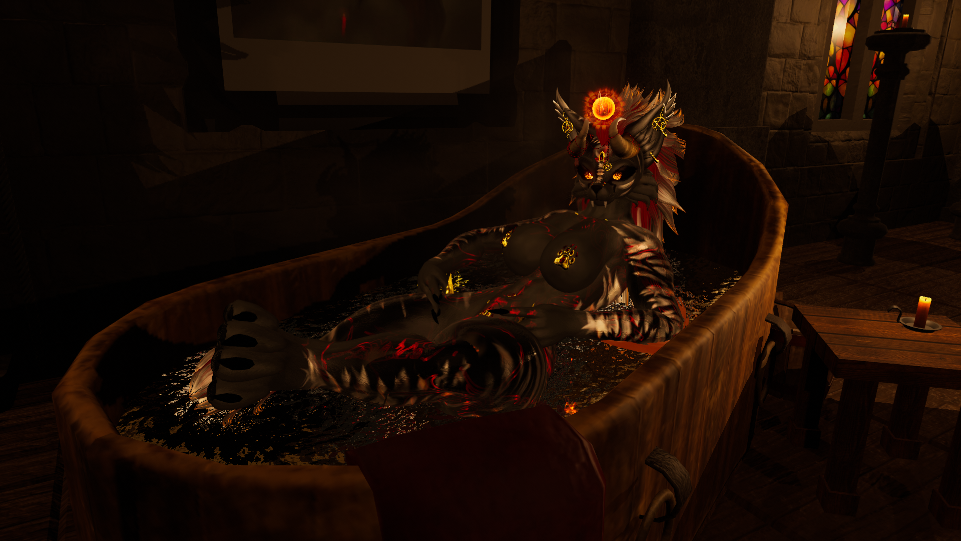 Trisha the HellCat is a dynamic avatar capable of transformation, characterized by an array of fiery effects and mature themes. She possesses the ability to soar through the skies and is equipped with an intricate magic system. Additionally, she features a diverse selection of prefabricated elements that cater to various attributes, accommodating both face-tracking and non-face-tracking configurations. Furthermore, there are versions available that do not undergo transformation, lack the NSFW enhancements, and exclude particle effects.systems.